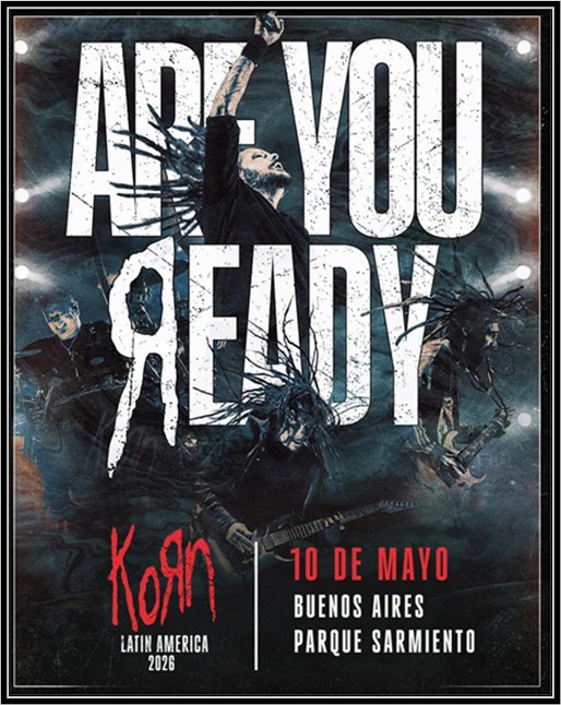 Nueve años después de su última visita a Sudamérica, Korn vuelve a Buenos Aires para encabezar su mayor gira por la región. En el marco de este tour, la banda se presentará el 10 de mayo en Parque Sarmiento, con Spiritbox (Canadá) y Seven Hours After Violet (Estados Unidos) como artistas invitados.